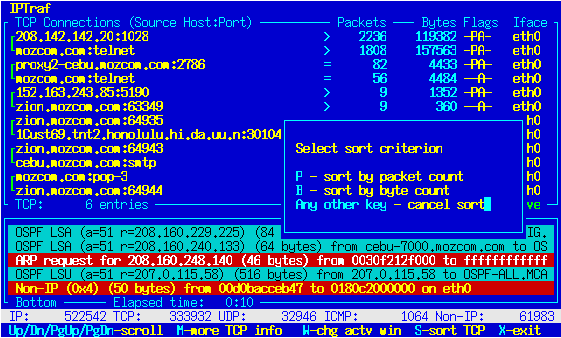 the IPTraf program. This is highly unusual, and should it occur, report