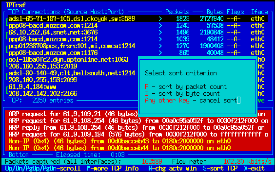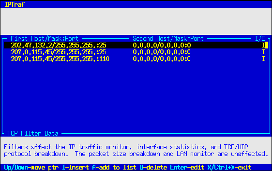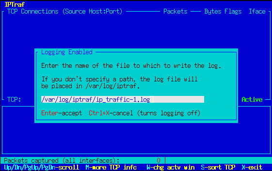 In interactive mode IPTraf asks you to confirm your exit command. Press